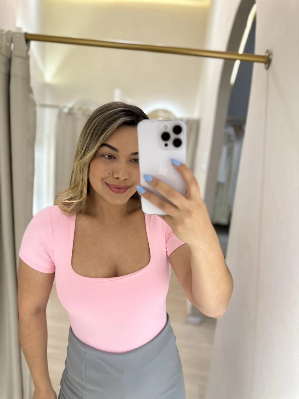 - em malha de poliamida com toque macio, a queridinha "malha geladinha" que deixa o look confortável